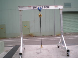 EC&MW is an American made product, over 20 years experience in manufacturing aluminium gantries crane. Its products consist of portable gantries crane, all terrain aluminium gantries crane, air tire caster gantries and removable leg gantries. Easy assembling, portability and light weight. Also available factory load test certification.